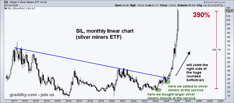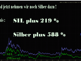 Leider muss man feststellen , dass die 'relativ gute' Performance der Silberminen (SIL/SILJ) immer noch 'unterproportional' verläuft: