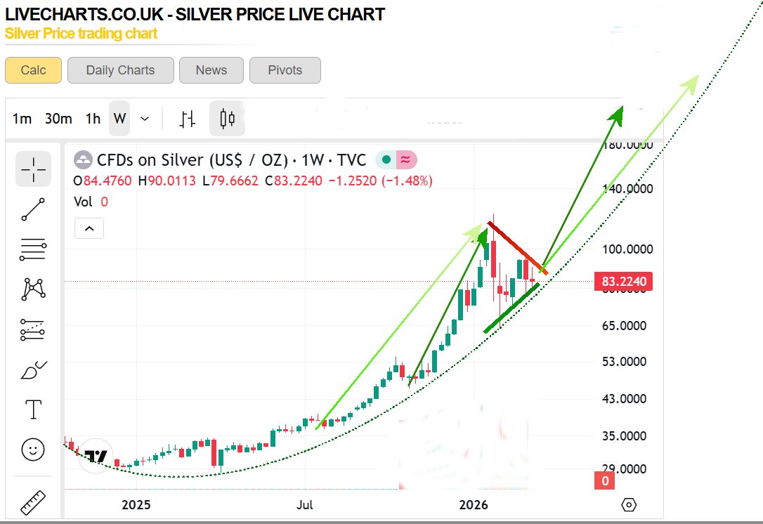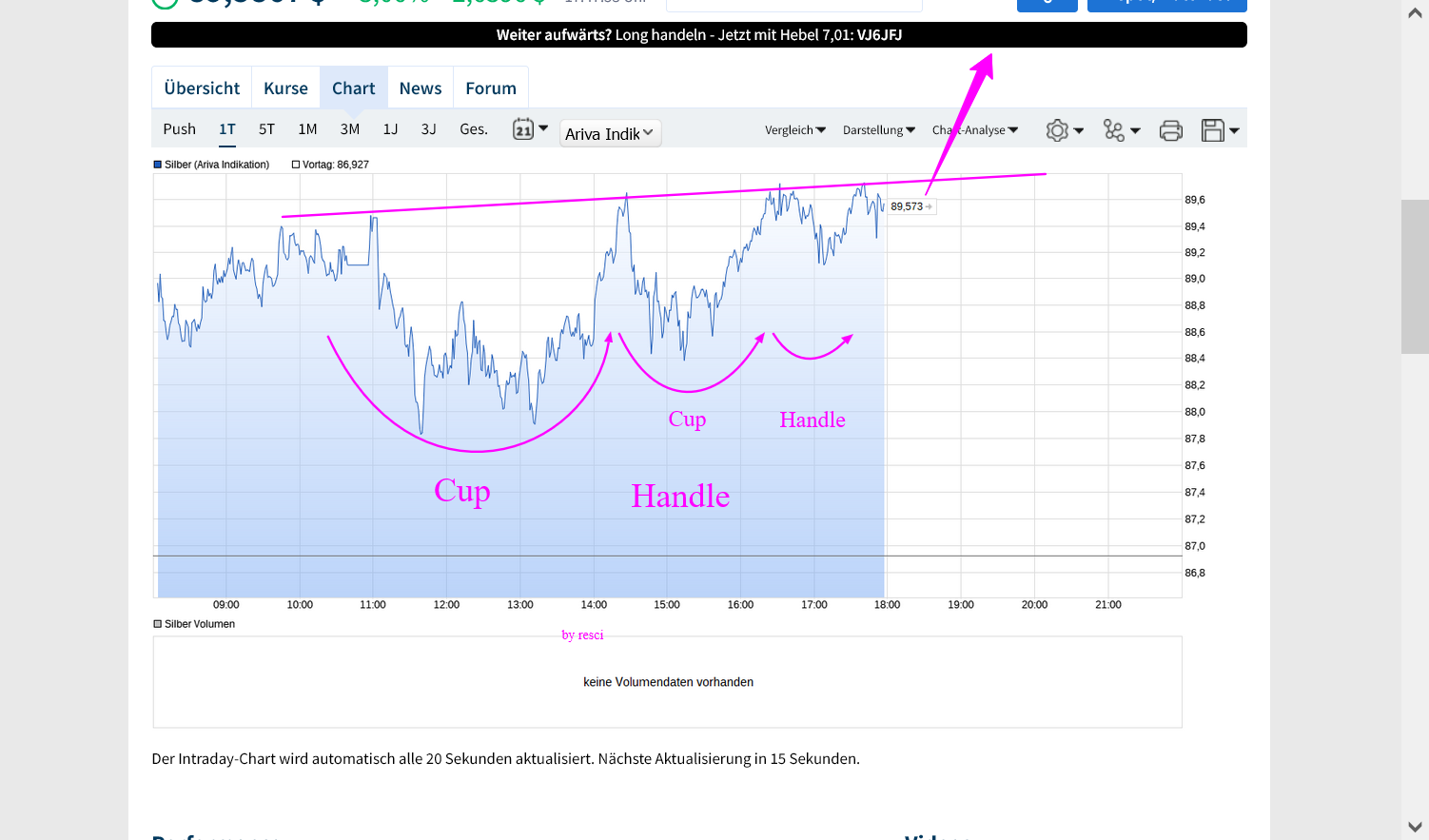 • Multiple Cup-Handle-Cup-Handle Formation heute bei Silber.