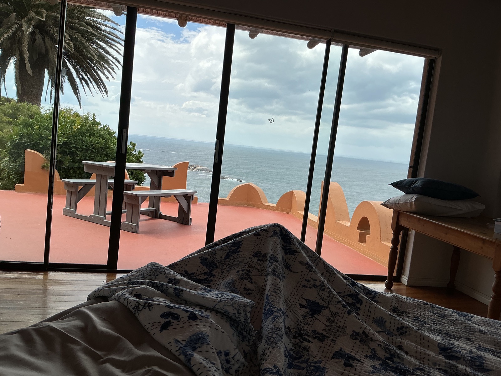 Ich sitze nicht, ich liege . Still. Und genieße die Aussicht und das Wetter. Heute zwar bewölkt aber muntere 23 Gräder…und mein Boot ist ca. 10 000 km entfernt… ![]()