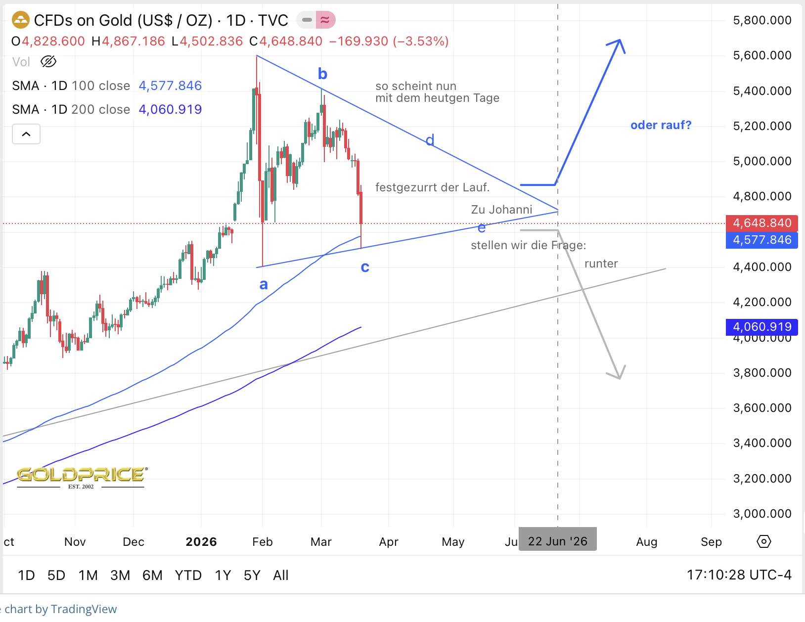 Übrigens, Stand jetzt, sind wir im Silber stärker überverkauft als Ende Januar 2026. RSI 19,85 im vier Stunden Chart! Der Washout war wirklich brutal.
