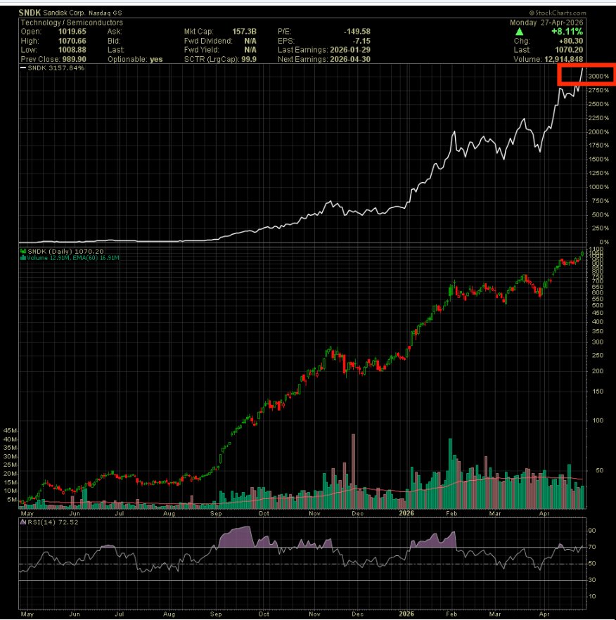 Ich finde beim Chart von Sundisk beeindruckend, dass dem Kurs egal war wo der RSI gestanden ist.