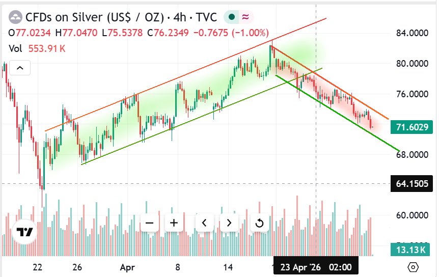 Danach erfolgt die charttechnische Betrachtung (wie hier z.b. eine rising wedge, eigentlich bearish mit Rückgang auf 67$). Mal abwarten ....