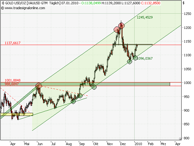 ich habe die beiden Verläufe mal in einem Chart dargestellt. Ich denke die Aussage ist in etwa die gleiche. Allerdings befindet sich das Wechselpaar EUR/US aktuell in einem untergradigen Downtrend. Wie auch das Gold, so befindet sich auch der Euro aktuell in einer Seitwärts/Aufwärtskorrektur (Erholungsbewegung in diesem untergradigen Downtrend). Gibt der Euro nun in die Erholungsbewegung des AUX/US etwas nach, so sollte der AUX/EUR Kursverlauf in der Aufwärtskorrektur etwas stärker steigen als der AUX/US.