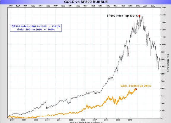 Auch schön Gold vs SP 500 Bubble... oder (etwas älterer Chart) gar vs Nasdaq. ![]()