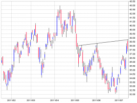 Beiliegend ein Chart von GDXJ. Am Widerstand abgeprallt heute. Ich könnte mir gut eine Konmsolidierung die nächste Zeit vorstellen und die Bildung einer rechten Schulter (inverse S-H-S).