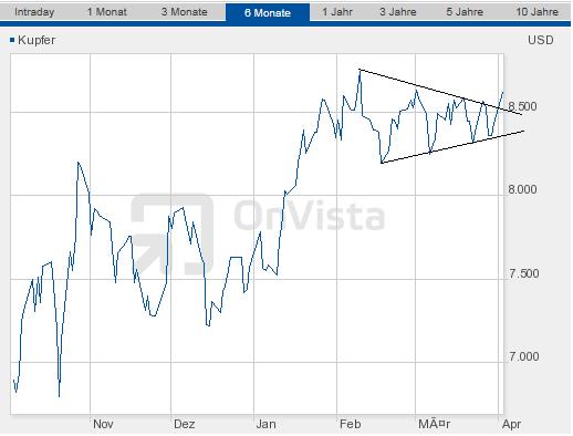 1. ist Kupfer aktuell an einem beinharten Widerstand angekommen. Hier von einem Ausbruch zu sprechen ist zumindest leichtsinnig.