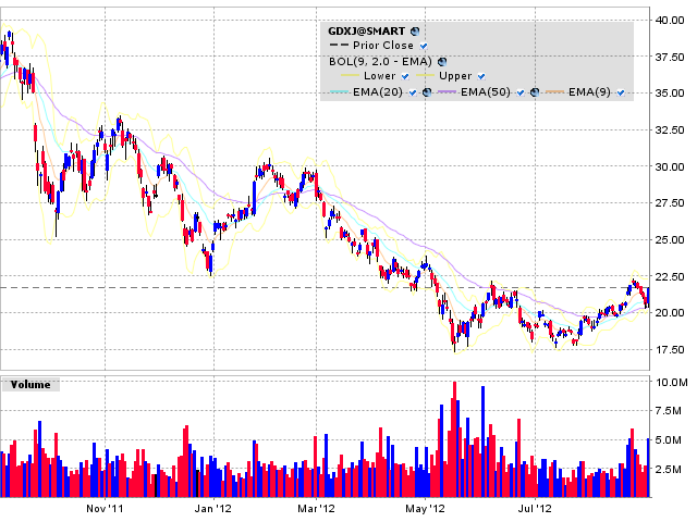 GDXJ (Junior-Aktien -ETF) sitzt aktuell auf dem 50 EMA. Seit März erwies sich der 50 EMA als schöne Trendlinie, die zu Beginn August nach oben überschritten wurde. Schauen wir mal, ob die Erholung gegen Börsenende NY kommt.