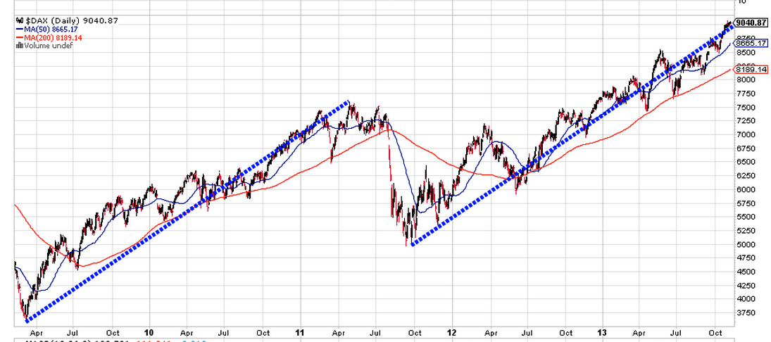 Unter Beibehaltung der historischen niedrigen Zinsen und von Quantitative Easing ist es nicht unwahrscheinlich das die Akteinhausse weiter trägt, als viele es sich vorstellen können. Leider befeuert diese Hausse tendenziell auch eine weiter voranschreitende Vermögenskonzentration, aber für die FED scheint die Steigerung des Wealth Effectes immer noch ein probates Mittel zu sein um die Wirtschaft anzuschieben, obwohl realwirtschaftlich, gerade am Arbeitsmarkt, die positiven Auswirkungen sehr gering bleiben.