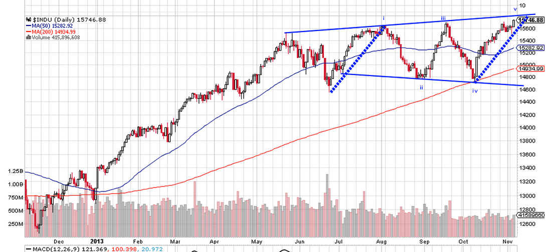 Noch als Zugabe der Dow Jones (Chart 2): Megaphon-Top?
