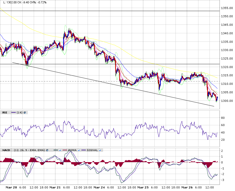 Wie erwartet wenig Action heute. Gold tummelt sich knapp unter 1300$. Dürfte in diesem Bereich bleiben bis morgen.