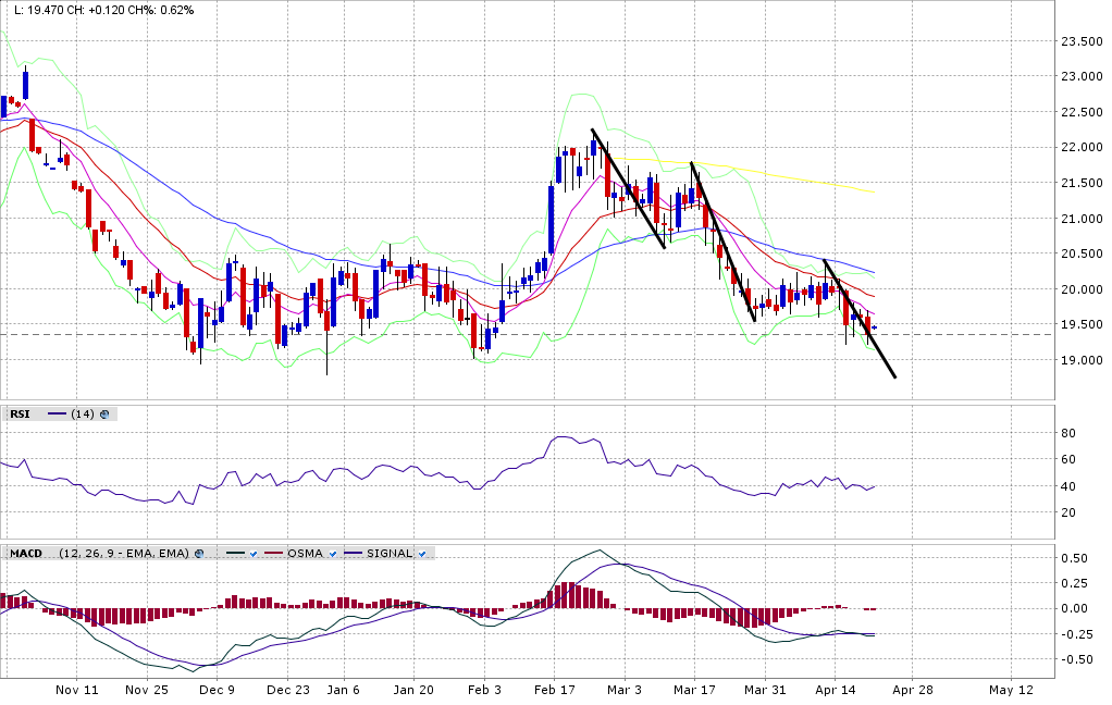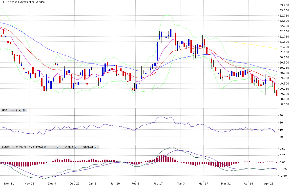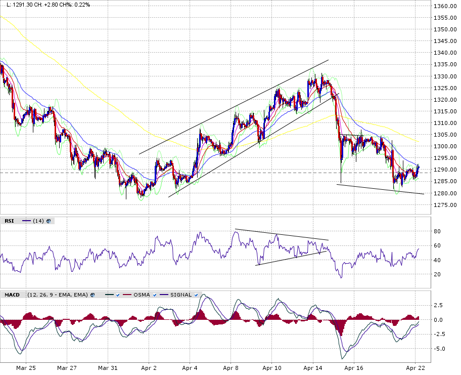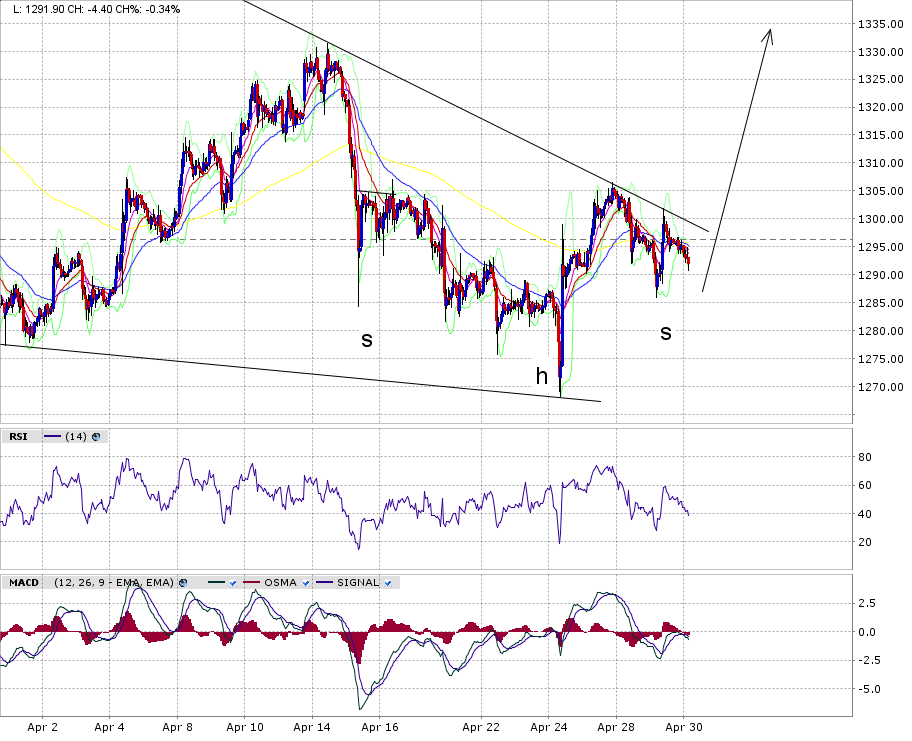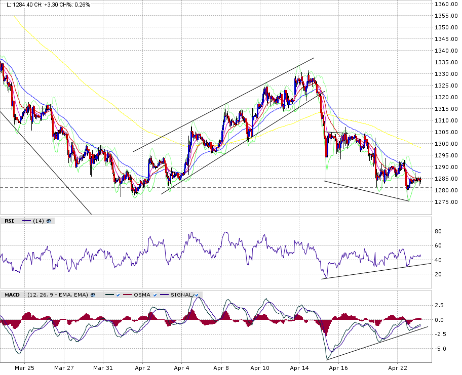 Dass im Bereich 1275-1280 im grösseren Rahmen eine Unterstützung ist, muss wohl nicht mehr erwähnt werden.... allerdings dürfte die Versuchung gross sein, ein paar Stops einzusammeln. Im kleineren Rahmen, 60 Min, ist ersichtlich (Chart1 : Gold Future), dass es trotz Divergenz nicht einfach sein wird für die Bullen. Bisher ist man jeweils am 20 MA gescheitert. Weitere Schwäche würde nicht verwundern.