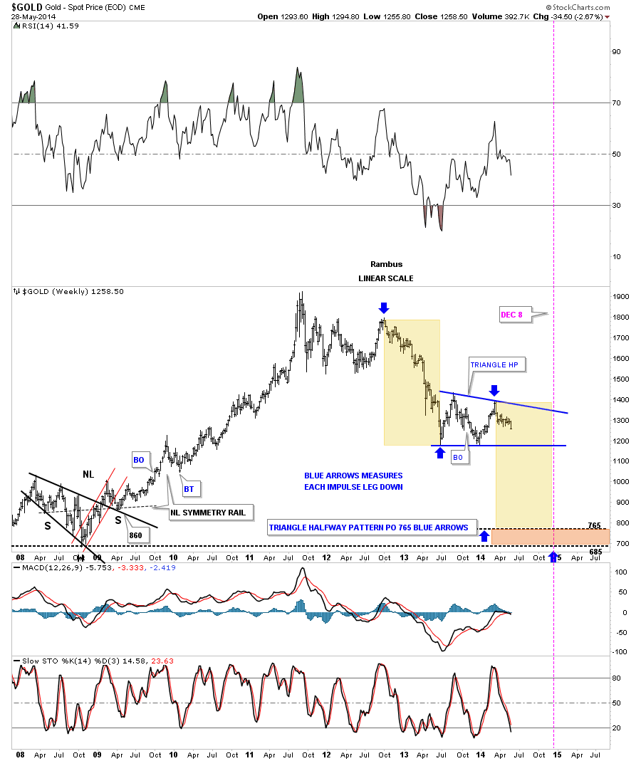 Schauen wir uns das nochmal genauer an: Gold machte im AUGUST 2011 zusammen mit einer ersten Preisspitze im TIP 'sein' TOP: Während TIP weiter stieg konsolidierte Gold . Im September 2012 brach Gold aus der Konsolidierungsformation nach oben aus. Just in dem Moment als die FED QE 3 (ad infinity) verkündete. Zunächst im Volumen von 40 Mrd. $ pro Monat. Bereits 3 Wochen später, noch bevor eine Ausweitung von QE 3 verkündet wurde ( Dezember '12) machte Gold sein TOP nach diesem Ausbruch. Ich sage: wurde Gold 'eingebremst' . Der Beginn des 'arrangierten' Preisverfalls. TIP stieg weiter. (