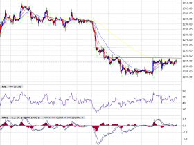 Nachdem im Stundenchart der 20MA geknackt werden konnte, ist das Szenario mit dem schnellen Abverkauf erst mal in weite ferne gerückt. Wie erwartet aber kein schnelles Rally, sondern es sieht tatsächlich bisher nach rounded bottom aus. Nun wird bald eine Entscheidung fallen müssen. Wird es tatsächlich ein rounded bottom, müssten wir jetzt denn eine Etage höher Richtung 1267 vorrücken und nach einer Pause würde es dann eine Bechleunigung nach oben geben. Die Alternative ist nicht besonders attraktiv, denn ein nochmaliges Scheitern hier bei rund 1257 und ein Abrutschen unter 1250 würde wohl das Aus für den rounded bottom bedeuten....