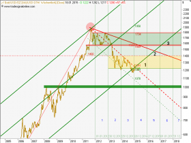 ich sehe das positiver, denn gold macht sich aktuell auf den weg, den trendkanal und die dreieckformation nach oben zu verlassen mit ziel 38er rt bei 1350...