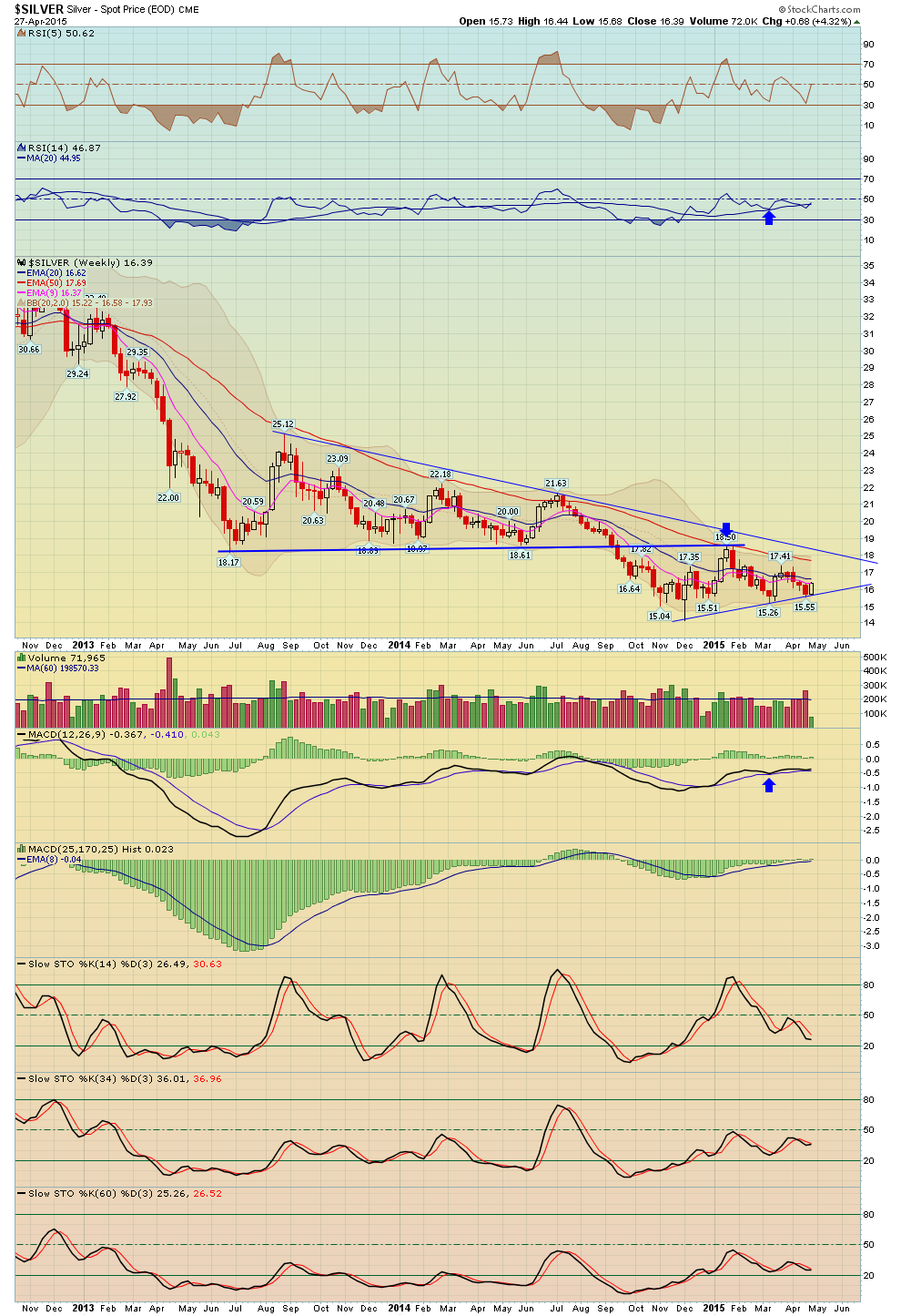 Silber: Umkehrung von Aktien. Im monthly gut ersichtlich, dass das Wedge nach oben gebrochen werden muss, um an Besserung glauben zu können.....