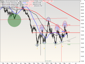 Wo sind jetzt die Ultra-bullen verkrochen...ganz schön leise hier geworden. Man man, geht es einmal hoch entsteht gleich euphorie, unglaublich. Es sieht weiterhin sehr übel aus und das €/$ trägt seins dazu...Wir gehen sicher noch ein Stück runter und die kleine Silberaufwärtslinie bei ca. 15,80 sollte ein hauch einer Hoffnung geben. Ansonsten weiter klar abwärts und trend zeigt nach unten. Ein 5mal wird der Test nicht halten sondern er wird dann durchrutschen in Richtung 13-10$...dort sollte man einsteigen. Auch jetzt eine kleine Portion ist nicht verkehrt, aber richtig bei 13 oder 10$