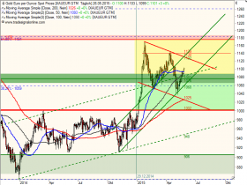• Paar Worte zu Sonntag...man hat ja sonst keine Zeit ,-)....So langsam nähert sich mein Zeithorizont, wo ich glaube, dass was passieren müsste. Entweder Szenario 1 oder 2 im Juni-Oktober. Die langweilige Seitwärtsphase ( gelbe Elipse) habe ich schon vorher gesehen und so kam es auch. Wenns hart kommt, ziehen wir diese Phase bis Anfang 2016 hinein. Soll mir auch Recht sein. Wichtig ist, dass dann endlich mal Volatilität reinkommt und am besten in Richtung Norden.