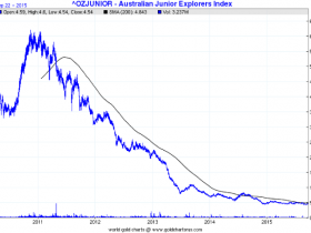 Irgendwie hab ich das Gefühl, als wenn sich die Minenaktien schon seit 2010/2011 in einer anhaltenden Art und Weise auskotzen. Denn durch die Bank 80% Verluste der Minenindizes bei sinkenden Energie- und auch Produktionskosten und bei zumeist steigender Produktion sind in meinen Augen schon mehr als unnormal. Seit 4-5 Jahren sehen wir bei Minen ein ständiges einen-Schritt-vor-drei-Schritte-zurück-Spielchen. Und genau deshalb kann auch ich mir weiter sinkende Minenindizes vorstellen und werde meinen aktuellen Minen-Bestand von 45% (sprich 55% Cash) solange nicht mehr ändern, bis eine nachhaltige Trendwende ersichtlich ist. Eventuell wird mal die eine Aktie verkauft und dafür eine andere, m.M. nach aussichtsreichere gekauft. Mehr jedoch nicht mehr, da bereits viel zu viel Geld mit Minen verbrannt wurde.