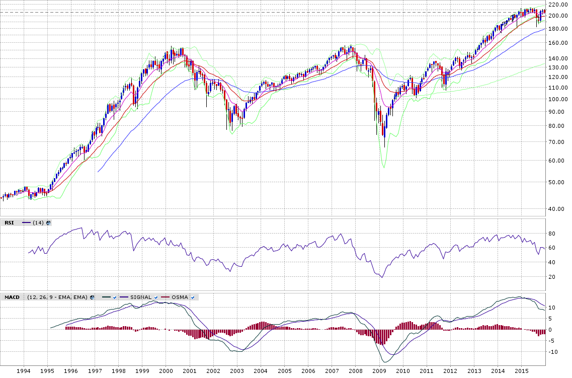 1. Wer kann das schon sagen? Deine Kursziele können durchaus erreicht werden. Die Blase müsste dann einfach noch gegen 2 Jahre lang weiter aufgepumpt werden. Ich meine, dass zumindest aktuell eine stark erhöhte Wahrscheinlichkeit besteht, dass es nicht mehr weitergeht. Die Tante Yellen steht nämlich vor dem Problem, dass sie höhere Zinsen angekündigt hat, obwohl die Zinsen gar nicht steigen können. Diese Situation muss nun gemeistert werden. Sollte sich im Markt die Meinung erhärten, dass die Zentralbanker entweder alles Idioten sind oder angesichts des eingeschlagenen Weges machtlos sind, dann könnte es schon sein, dass wir bereits das High bei Aktien hinter uns haben. Wenn ich bei Chart 1 den MACD betrachte, habe ich in den letzten 20 Jahren nur 2 Mal eine ähnliche Konstellation (gekreuzt und abwärts gerichtet) gesehen. Beide Male folgte der Bärenmarkt.