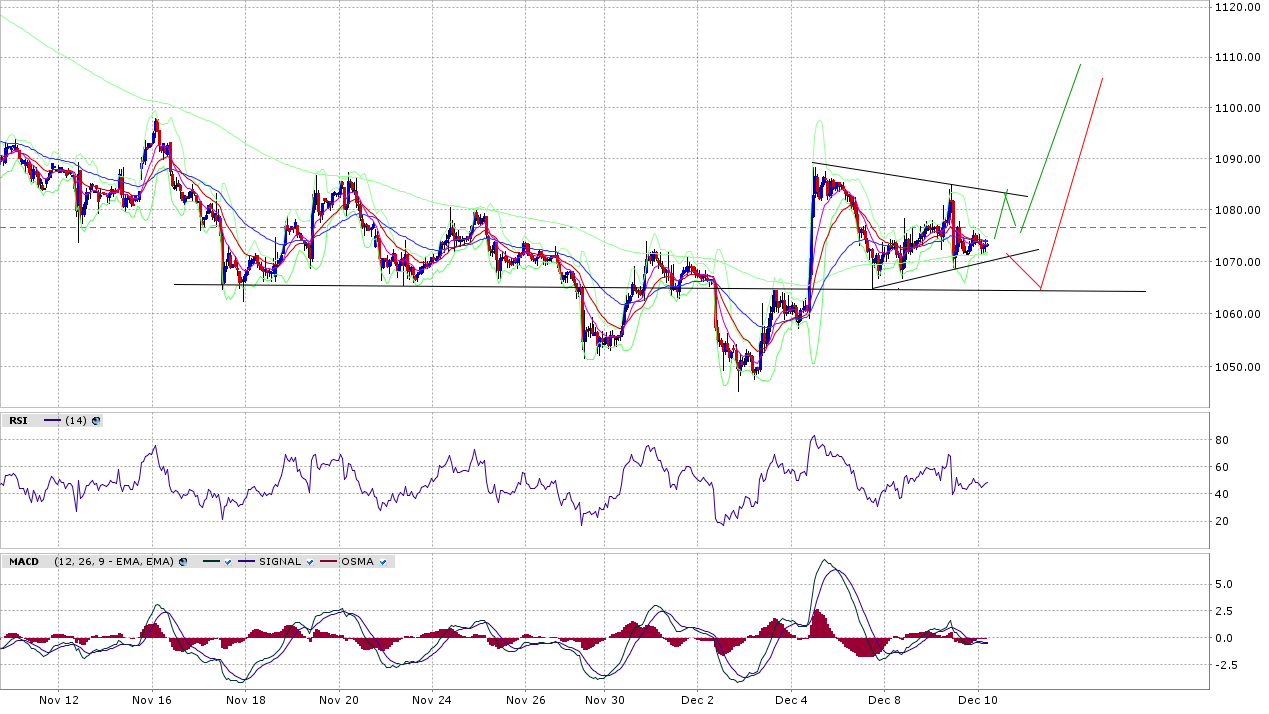 Gold unter 1064 kritisch, bei Goldaktien Trendlinie.