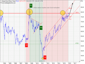 • Die positive Stimmung ist zu schnell heiß gelaufen. Kurzfristig sieht man das der Goldpreis genau am Abwärtstrend bei 1265$ abgeprallt ist. Für mich steht das Jahr 2016 für Bodenbildung, und sehe es immer noch so. Eine Spanne von 1180-1400$ sollte der Goldpreis in 2016 haben. Unter 1180$ sollte es nicht mehr gehen, das wäre gut.