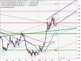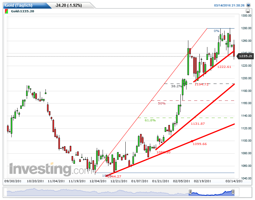 Ich sehe ein Rebreak des Aufwärtstrend und ab ca. 1218-1220 muss es wieder drehen. Spätestens ab 1200-1180. Wir bauen gerade die überkaufte Situation ab. Ich denke noch immer, es wurde ab 2011 zu viel Gold propagiert und eine gute Masse muss sich wieder verabschieden. Klar kann man schon wieder spekulieren, und nachlegen, aber die Frage muss jeder selber entscheiden. Ich habe erstmal genug und paar ünzlein kann man nachholen um einfach nicht einzuschlafen um alles beobachten zu können.