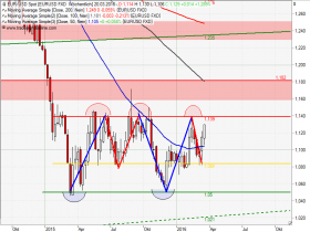 Hier noch was zum €/$...tja, die M-Formation hat wohl keinen Bestand und es geht wieder Richtung 1,14 wenn nicht sogar 1,18...das könnte mit Hoch zwischen 1320-1400 passen. Hier sieht man klar, dass man alles schön in Gleichschritt kontroliert. Eurogold will man wohl auch nicht ausbrechen lassen.