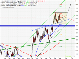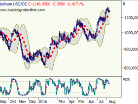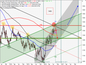 Wenn die Unterstützung bei 1300 nicht hält (unteres Bollinger Band im Gold Tageschart), dann liegt m.E. ein deutliches Verkaufssignal vor.