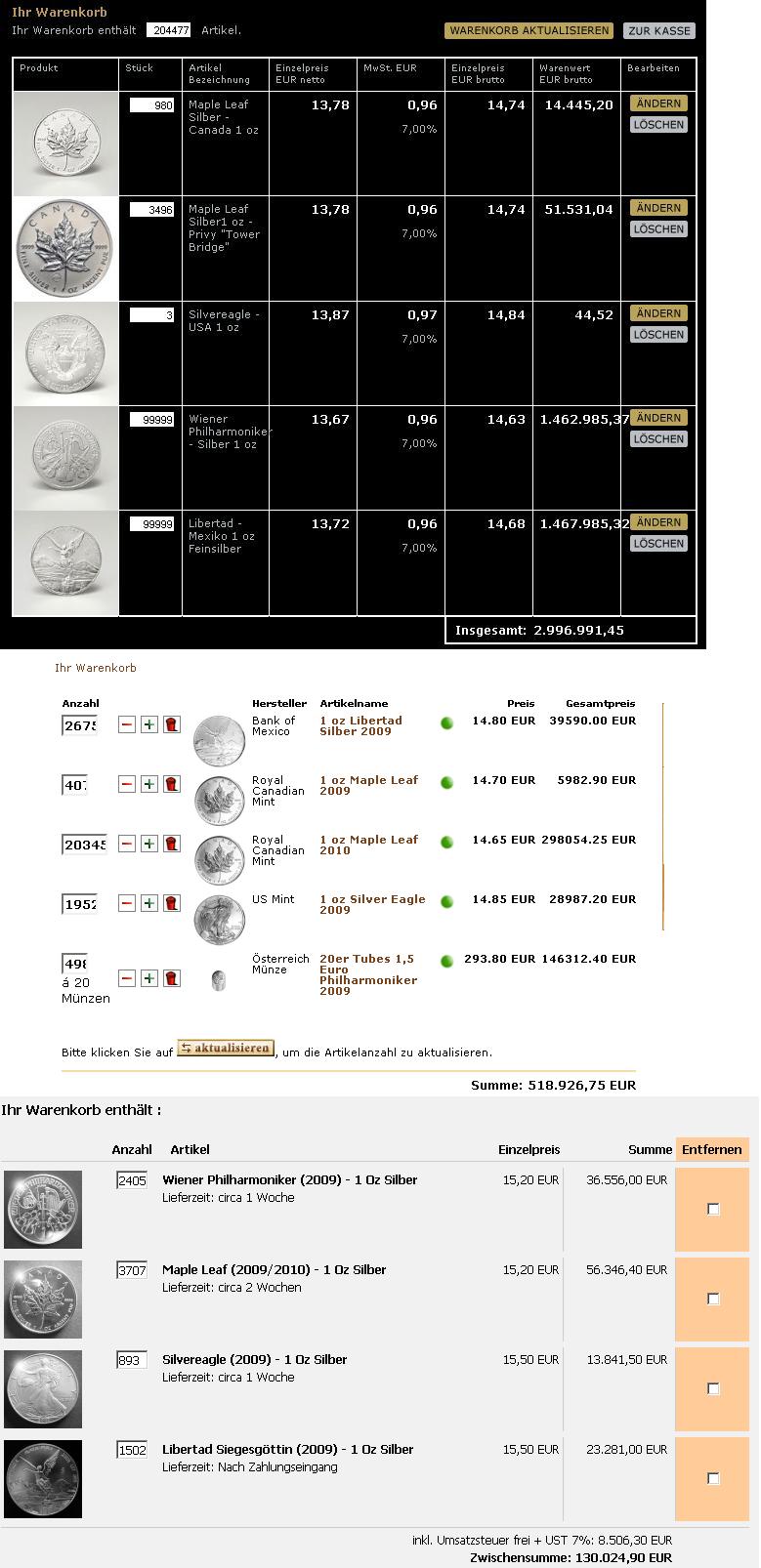 Aktuell kann man keine Silberunzen bei folgenden Münzprägeanstalten bestellen: