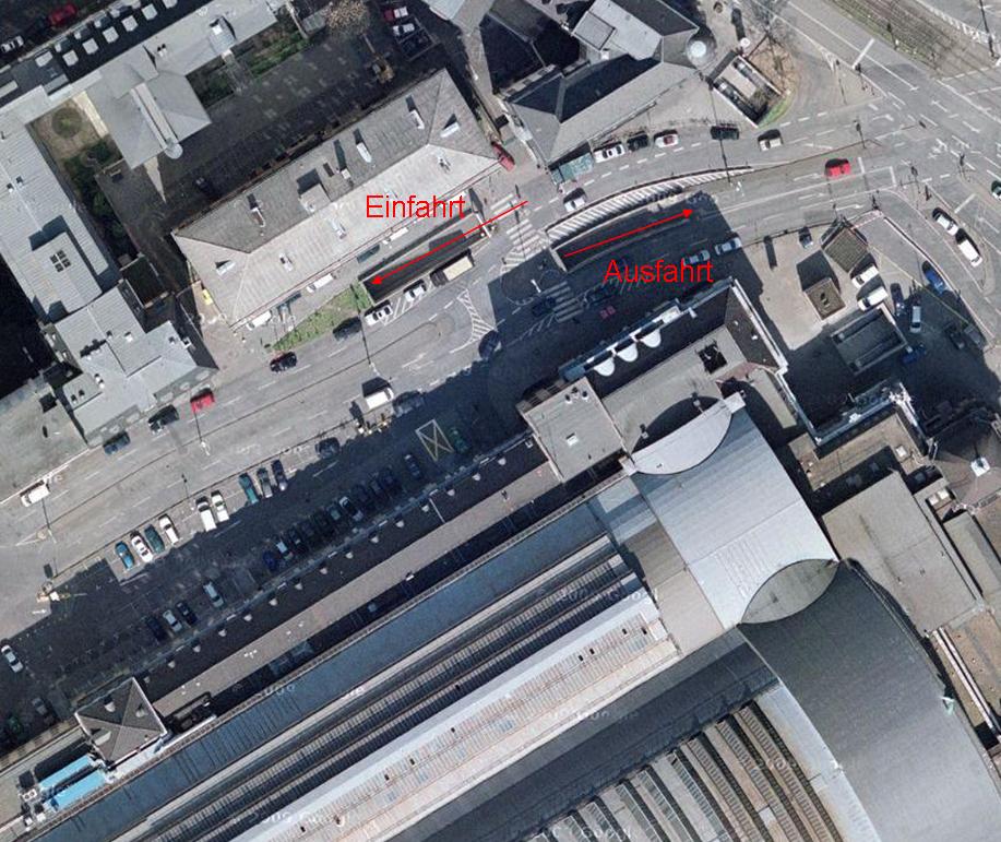 Habe mal Bild von Google Maps angehängt wo man die Tiefgarageneinfahrt sieht. Der Bunker selbst ist unter dem Hbf. Da kommst Du auch von den S-Bahn-Gleisen im Tiefbahnhof hin; statt mit der Rolltteppe in die B-Eben hochzufahren, kannst Du auch an den Rolltreppen rechts und links vorbei laufen zu den Treppen (da wo sich gerne Wohnsitzlose niederlassen). Wenn man genau hinschaut, dann sieht man, dass einige Wände nicht gemauert, sonder große Tore sind. Ist übrigens ein ehemaliger Atombunker.