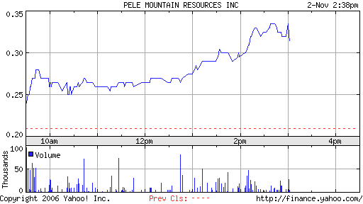TORONTO, ONTARIO--(CCNMatthews - Nov. 2, 2006) - Pele Mountain Resources Inc. (TSX VENTURE:GEM - News; "Pele" or the "Company") announced today that it has successfully concluded the acquisition of the Pardee Uranium Property in the Elliot Lake area of northern Ontario, as announced on October 16, by completing and filing all necessary assessment work. With this acquisition, Pele now owns a 100-percent interest in the entire 155 mining claim units that comprise its Elliot Lake uranium project (the "Project")...........