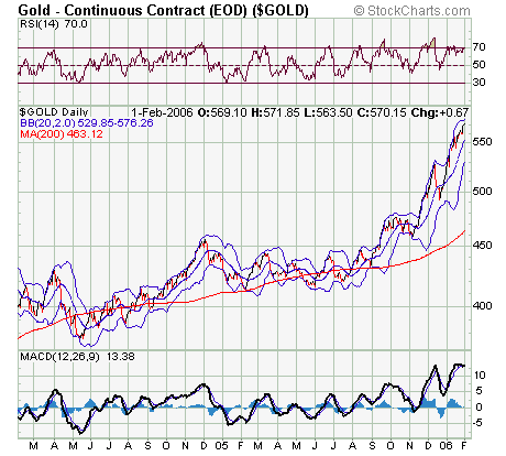 Wenns weiter nach oben geht solls mir auch recht sein....hab noch genügend drin um davon überdurchschnittlich zu profitieren. Mein Gefühl sagt mir aber, dass der Markt zu schnell rauf ist und dass wir uns uns derzeit im übergekauften Bereich bewegen...d.h. nicht dass ich glaube dass die Phase 2 der Goldhausse schon vorbei ist.....bestimmt nicht....aber so kanns nicht weitergehen....mir reden derzeit zuviele Leute von 600US$ +X (inclusive mir selber) da hab ich jetzt einfach mal ein bisschen Gewinne mitgenommen. Ich erwarte einen mitteldeftigen Rücksetzer mit anschließender Konsolidierung und dann werden wir im weiteren Jahresverlauf die 600 sehen; wenn wir Sie vorher sehen wird der Rücksetzer umso deftiger. Kommen muss was, sonst kann ja keiner mehr was mit Markettiming verdienen