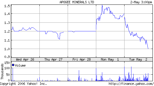 DENVER, May 2, 2006, 2006 /PRNewswire-FirstCall via COMTEX News Network/ -- Apex Silver Mines Limited (Amex: SIL) today responded to the unusual trading activity in its ordinary shares. The company believes this activity is related to recent events in Bolivia concerning the country's planned nationalization of its hydrocarbon industry. The company is not aware of any plan by the government of Bolivia to follow a similar policy in mining. Apex Silver was particularly encouraged by recent statements made by the Bolivian Minister of Mines and Metallurgy in which he emphasized that "the mining policy does not contemplate nationalization and even less incorporation of private companies such as San Cristobal."