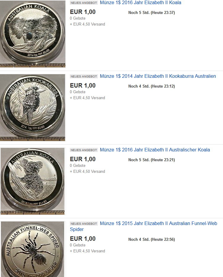 Keine Fakes , aber gestohlene Auktionsbilder, es ist nicht davon auszugehen, dass der Anbieter über Münzen verfügt