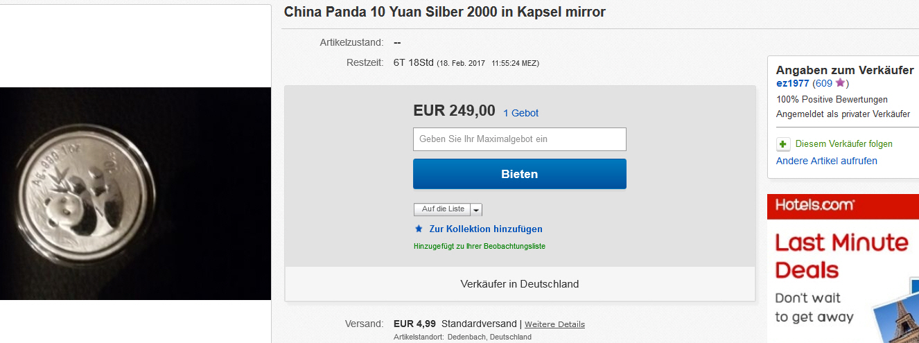 Zum Verkauf steht eine chinesische Panda Silber Münze