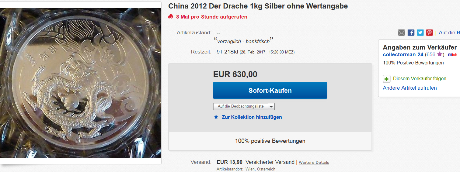 During past month 1kg Silbermünze Jahr des Drachen Silber Münze Year of the Dragon 2012 (#302229274776)EUR 555.00View Item -