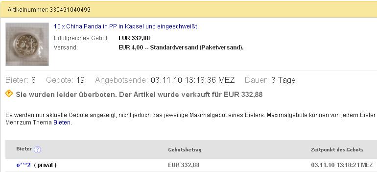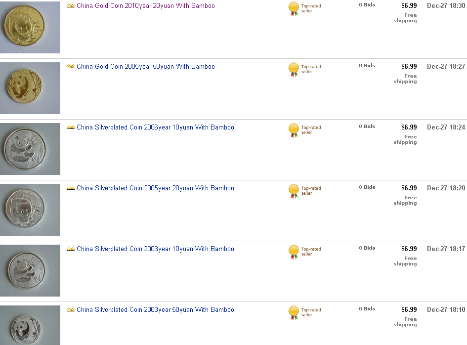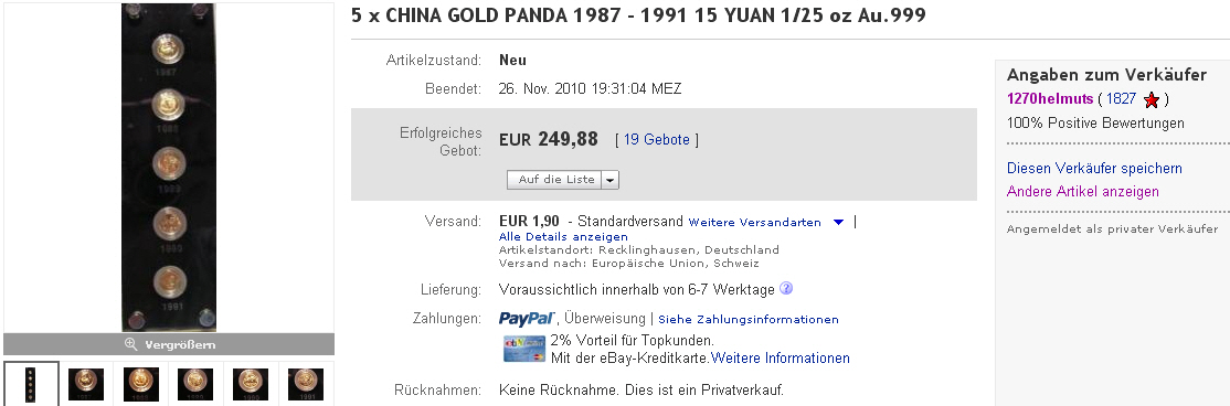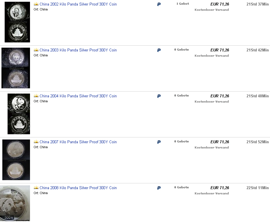 Man beachte, wie die Panda-Medaillen angeboten wurden: