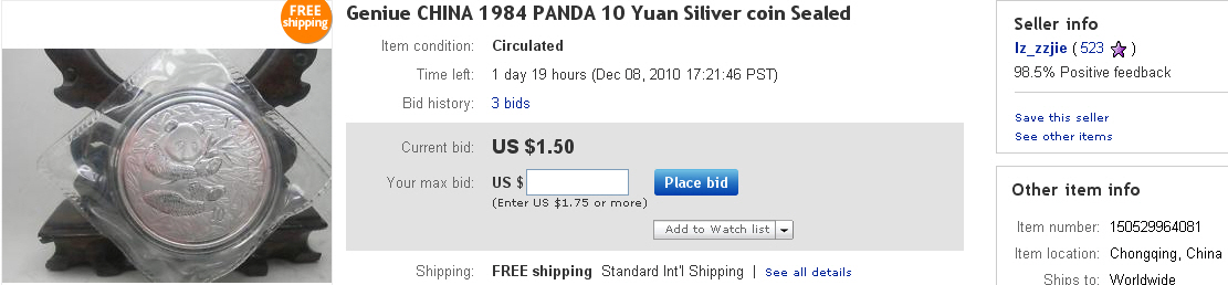 Da steht nirgends etwas von 10 Yuan ; dieser Verkäufer wusste schon, welchen Schrott er anbietet.