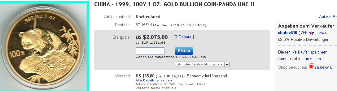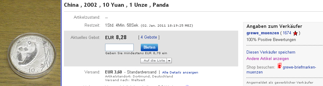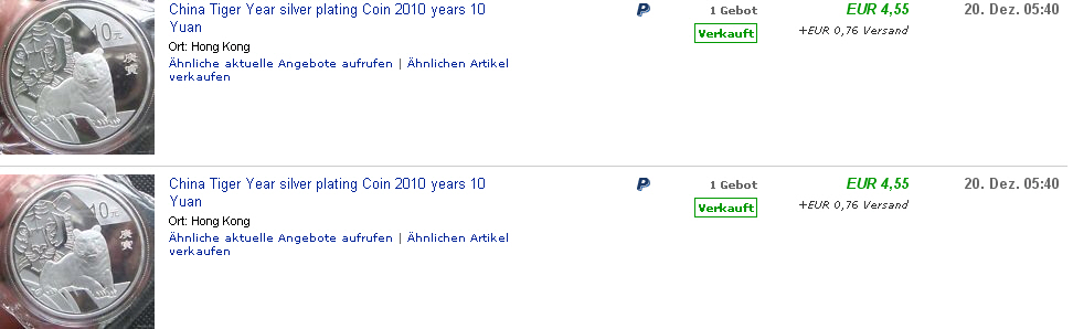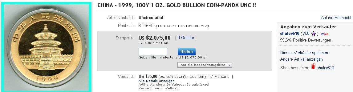 Den Fake erkenne ich nur an der etwas abweichenden Dicke der Jahreszahl und am Yuansymbol. Die Pfosten sind korrekt, Nennwert drauf, Motiv ok (?). Habe ich etwas übersehen? Es wäre super, wenn wir mehr auf die Kennzeichen eines Fakes eingehen könnten. Wenn in der Beschreibung natürlich "ca. 27g", "NP", "versilbert", usw. steht, ist das natürlich unnötig. Die klaren Anzeichen für Fakes (sh. Bullionweb) sind mir bekannt, dennoch werden viele Laien, welche eben diese möglicherweise auch kennen, die Fakes nicht klar erkennen können.