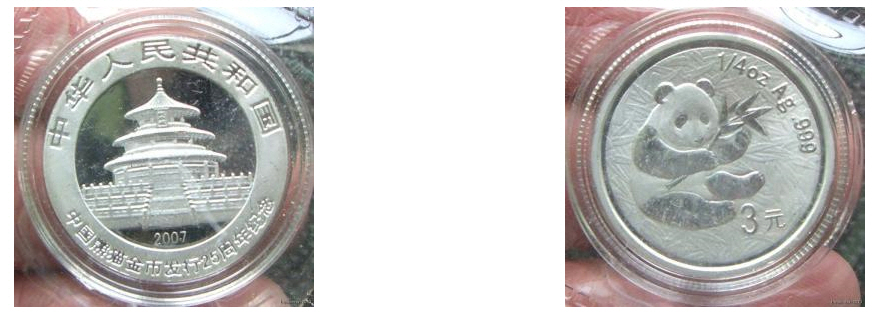 Hier zum Vergleich Bilder der echten 150 Yuan Goldmünzen (gilt auch für die 10 Yuan Silber):