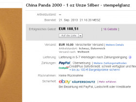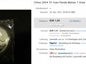 .***8 (privat) 19.11.13 19:56 2000 China Panda Münze 10 Yuan (Nr.181255784692)EUR 65,30Artikel aufrufen