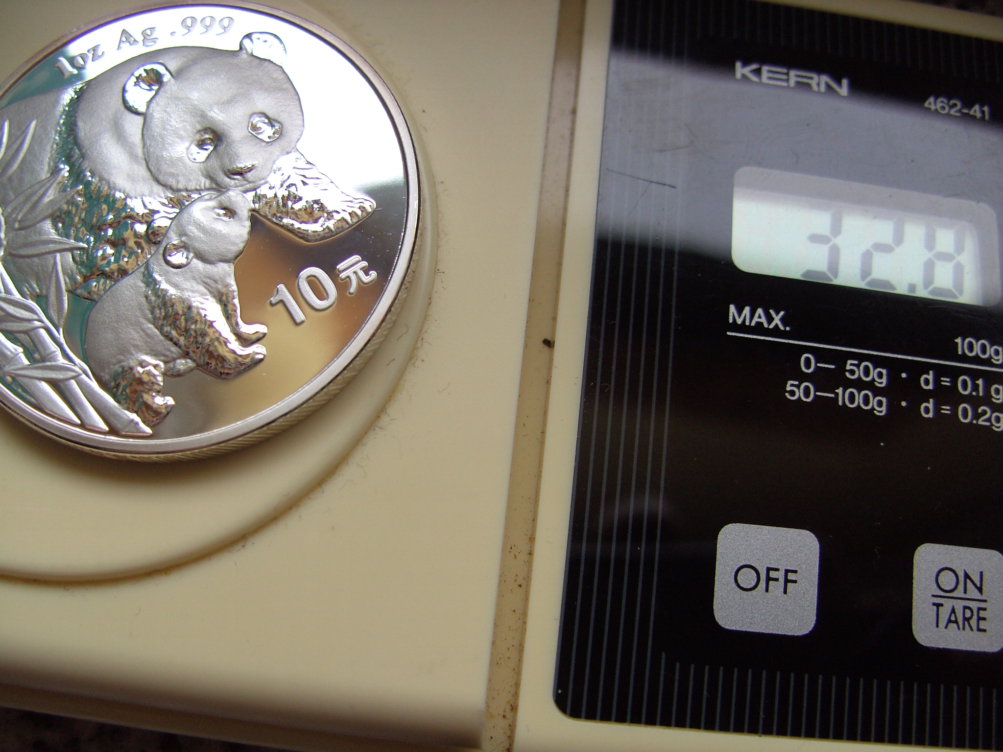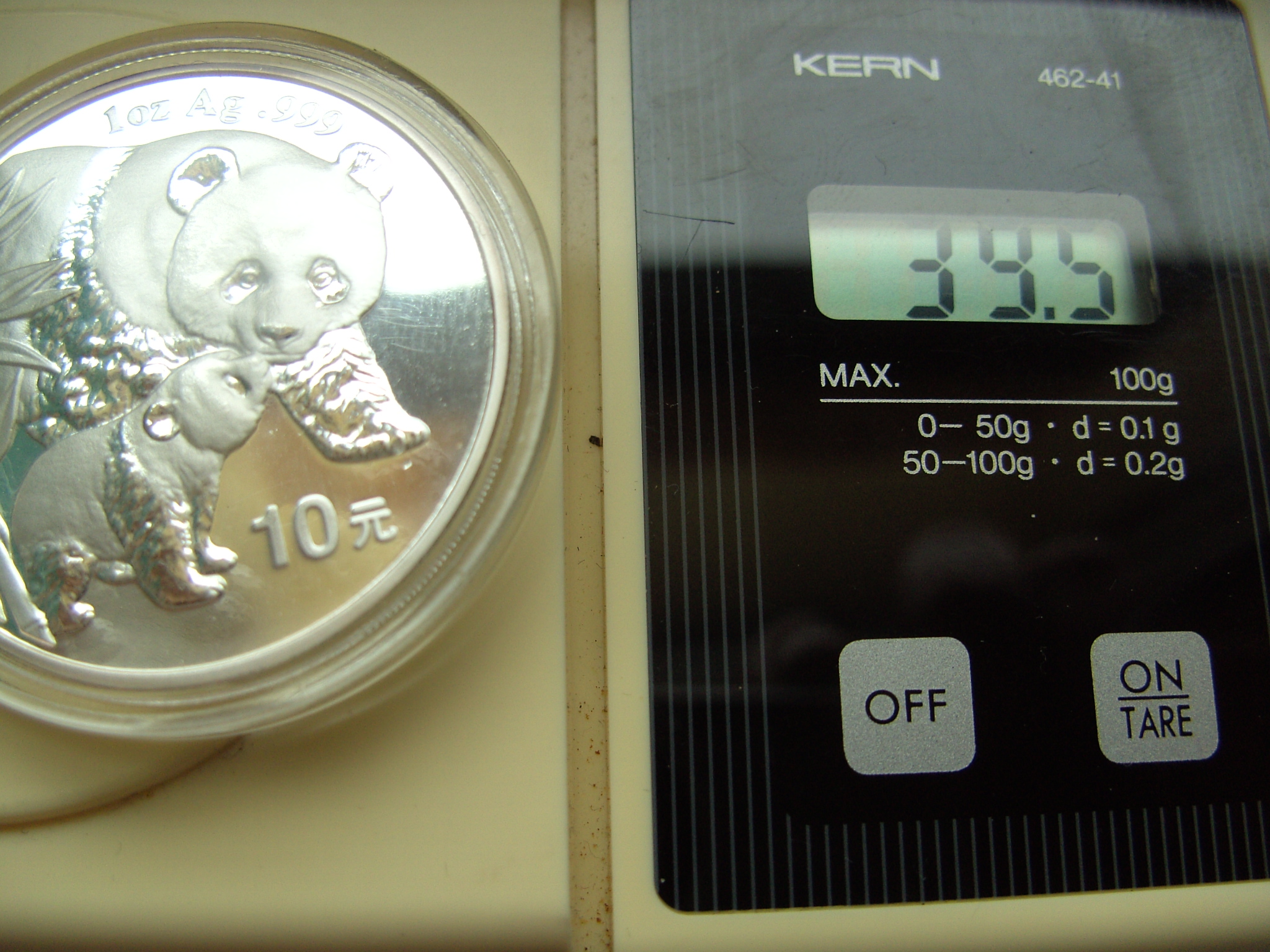 Am 29.01.14 hat der Verkäufer die folgenden Angaben hinzugefügt:da ich x Anfragen und Hinweise bekommen habe das diese Münze eine Fälschung ist nehme ich sie aus der Versteigerung.Diese Sammler wissen wohl nicht das es mindestens 3 Varianten gibt und diese sehr Selten.Ich werde dafür einen Panda mit matten Ring einstellen,dieser hat leider eine kleine patina oben rechts