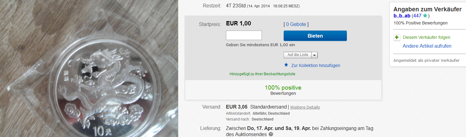 Wenn das so weitergeht, wird es echt schwierig, bei so manchem Online-Auktionshaus die echten Münzen herauszufinden