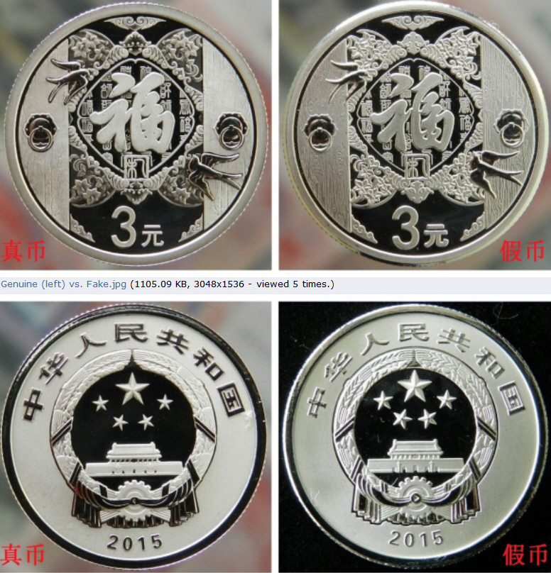 und genau diese Münzen von der Peoples Bank of China sind dort als Echte Münzen abgebildet.