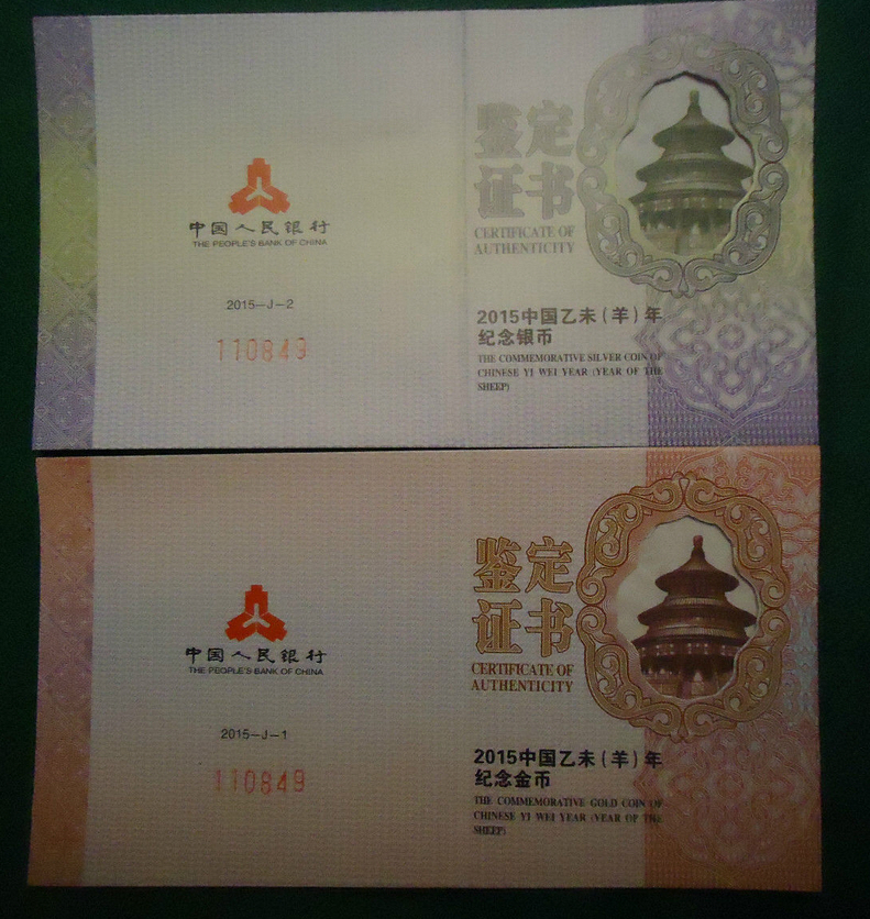 Sie verweisen auf die Zertifikate. Ich hatte auch schon Chinesische Goldmünze mit Zertifikaten, die sich