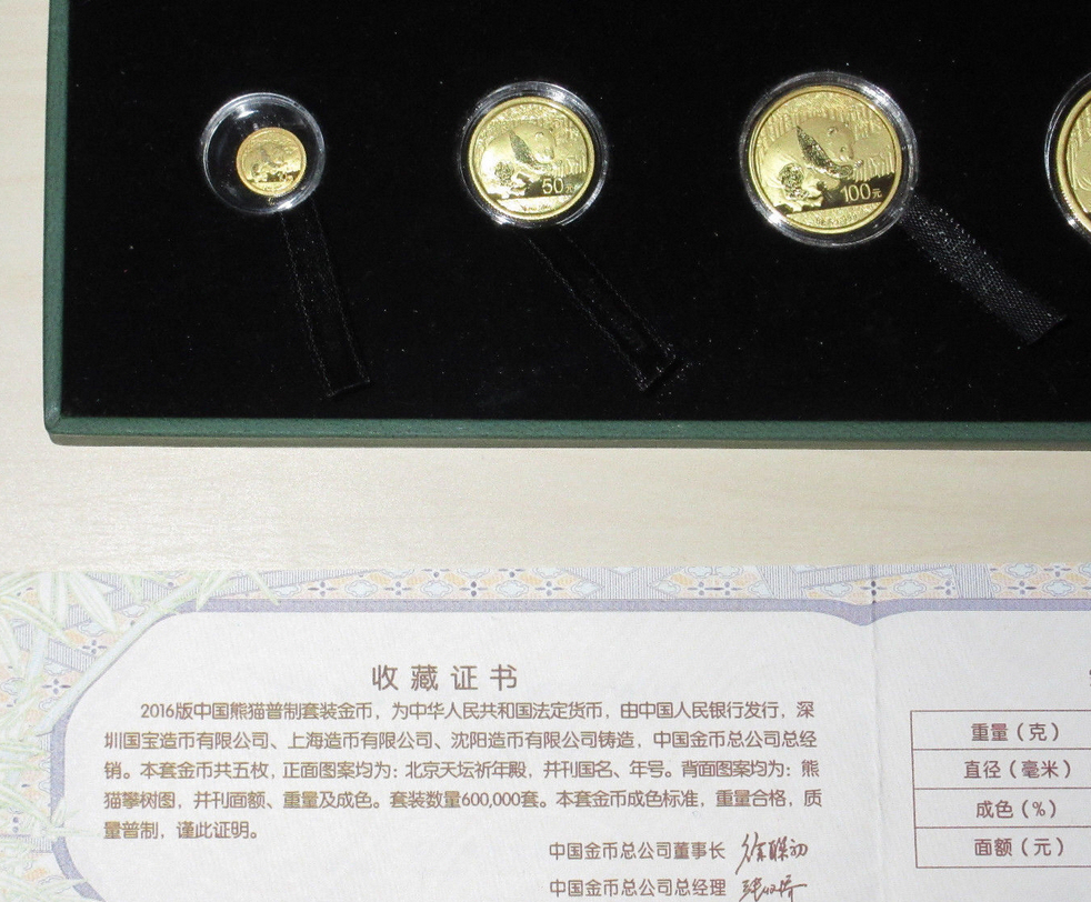 Die Münzen stammen aus einem Nachlass.Zitat von steve-bluntChina Panda Gold Setbestehend aus 5 Münzen Gold plated mit einemMünzgewicht zu je 1g, 3g, 8g, 15g und 30g. China Panda Gold Setbestehend aus 5 Münzen Gold plated mit einemMünzgewicht zu je 1g, 3g, 8g, 15g und 30g. Alle 5 Münzen aus dem Jahr 2016 einzeln in Kapseln,