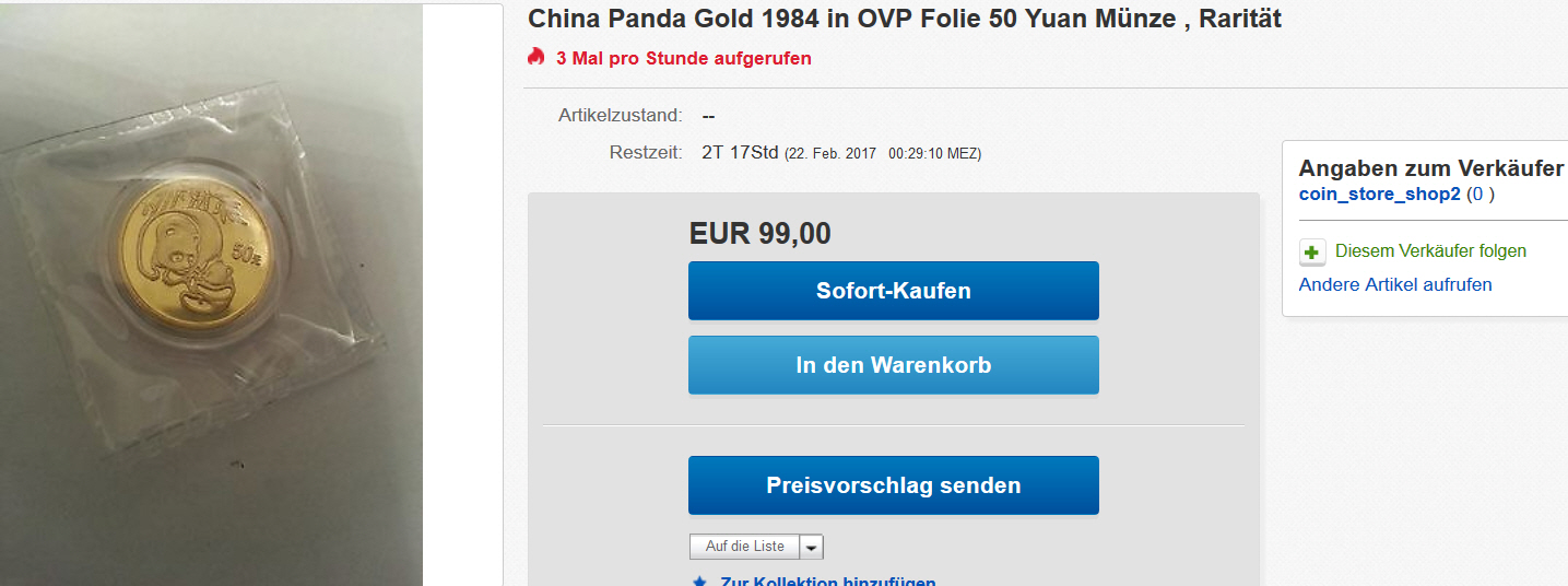 btw.ZitatBei den Angaben der Artikelmerkmale stütze ich mich auf den Aufdruck der Blisterkarte. Um den Originalzustand zu erhalten wurde die Zertifikat-Blisterkarte nicht geöffnet d.h. das auch keine Prüfung vorgenommen wurde und der Goldbarren somit ausdrücklich als unecht verkauft wird. Bitte nur dann bieten wenn Sie mit den Angaben einverstanden sind.