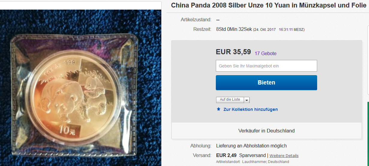 In den letzten 6 Monaten Silbermünze 1 oz.Panda 2010 (Nr.322768042754)EUR 23,10