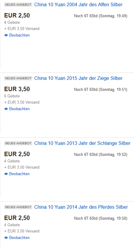 BTW, Auf EBay sind Pandas und China Münzen zur Aktion, ....