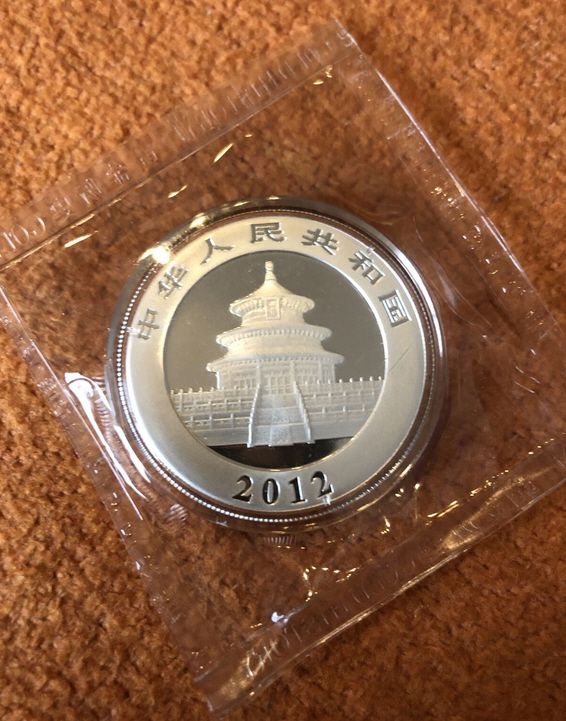 10 Yuan China 2012 Silber "Panda" 1 oz Silber Original Eingeschweißt.